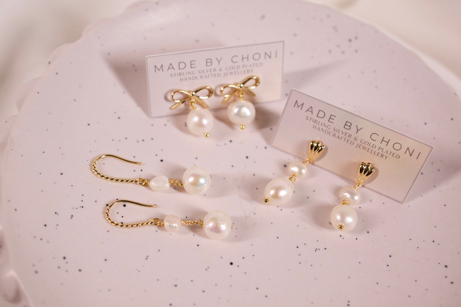 Silvie Earrings - Stirling Silver Pearl Dangles