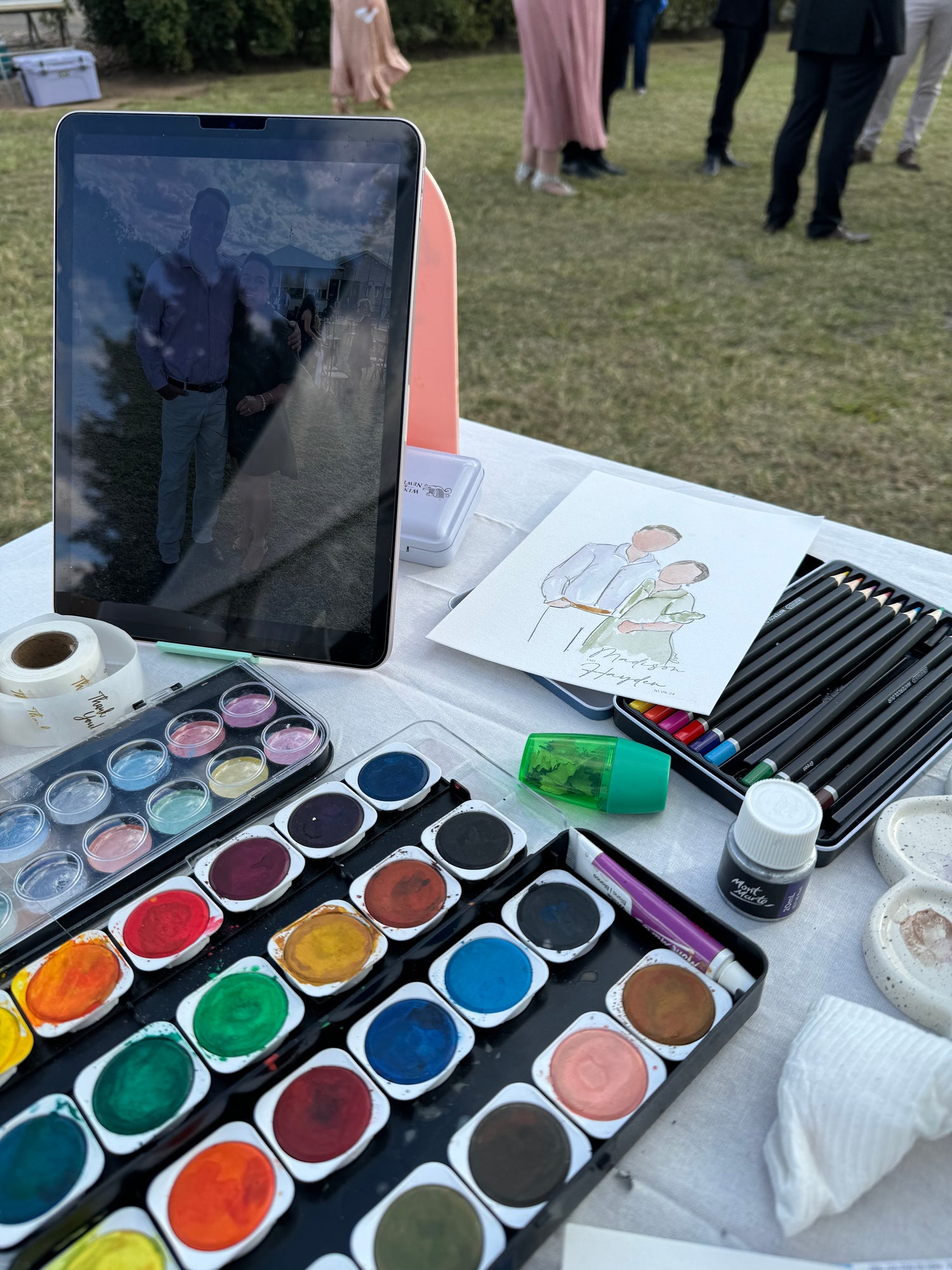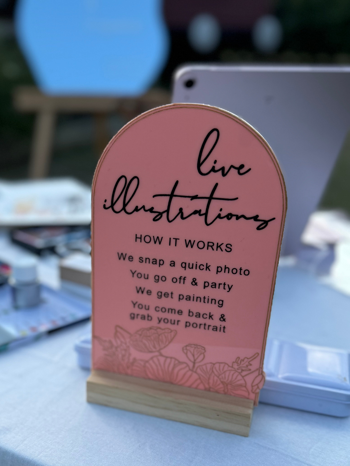 Our Illustrations allow your guests to be sketched live and in-the-moment, no need to line up and wait. Our Artist will take coupled or group photos of attendees while they enjoy your event. Your guests can experience seeing their artwork come together, packaged and ready to be taken home.